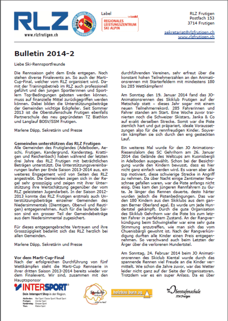 Informationen zur laufenden Wettkampfsaison der RLZ Athleten und zum Marti-Cup.