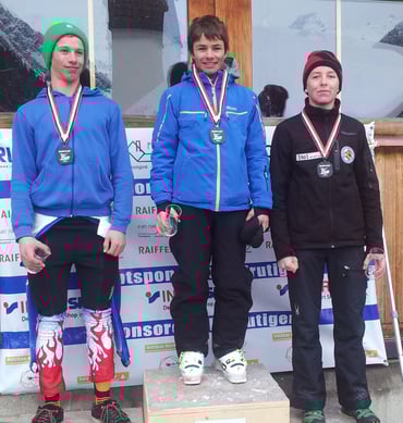 Bild (KU_16) von links: Mühlematter Dominik JO Lakers Faulensee, Künzi Jeremias JO Adleboden (Tagesbestzeit), Trummer Patrick JO Adelboden